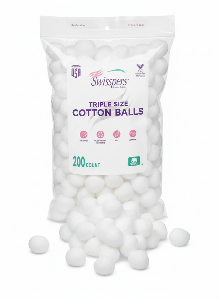 Soft, absorbent 1″ cotton balls.