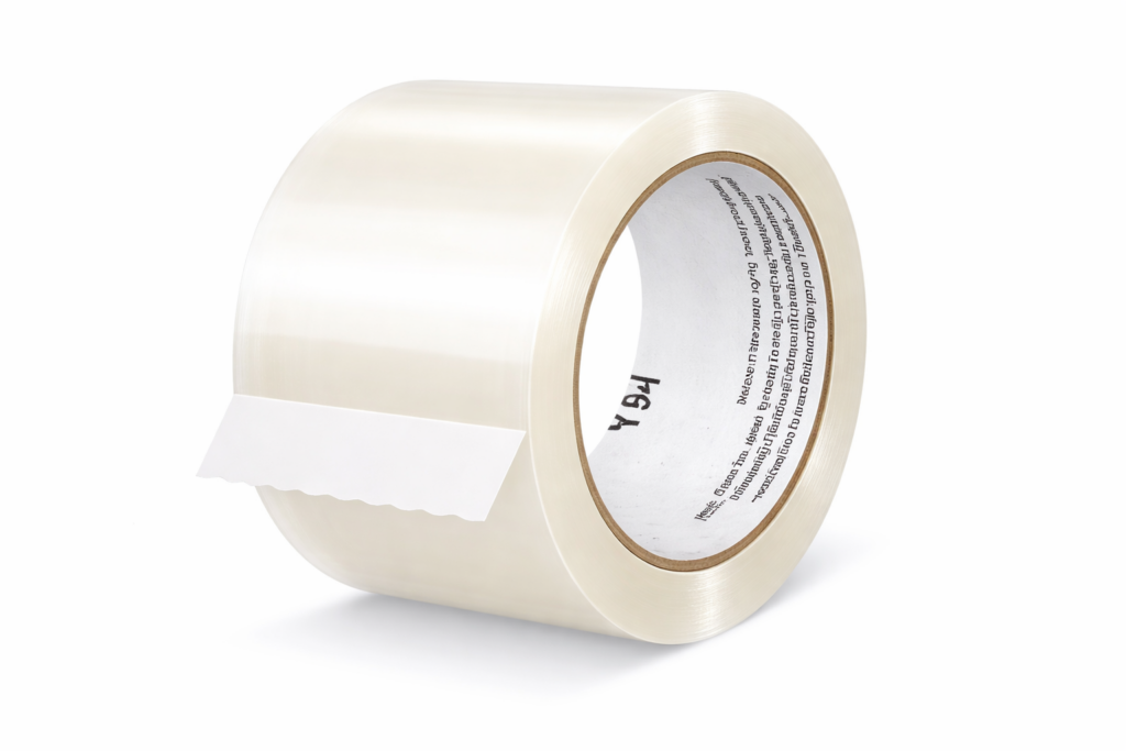 Clear polypropylene backing with water-based acrylic adhesive.