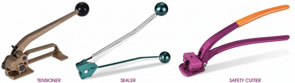 TENSIONER – For tensioning steel strapping on flat surfaces.