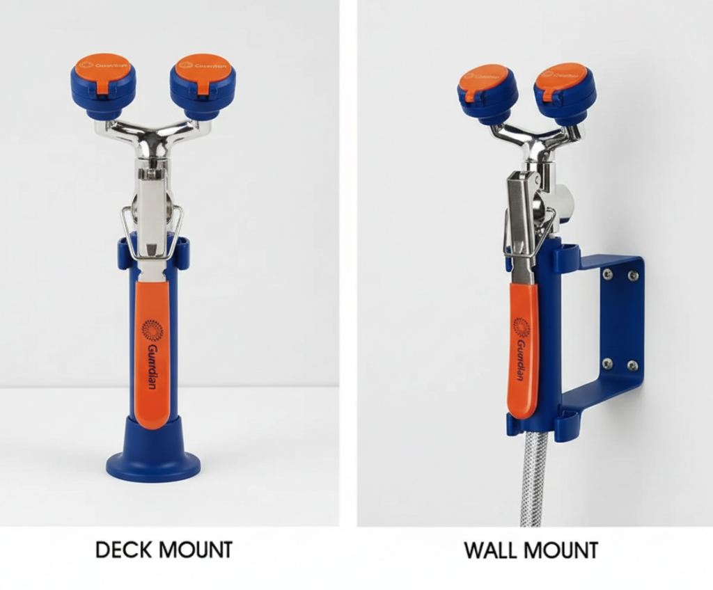 Includes: eyewash drench hose and emergency sign.
