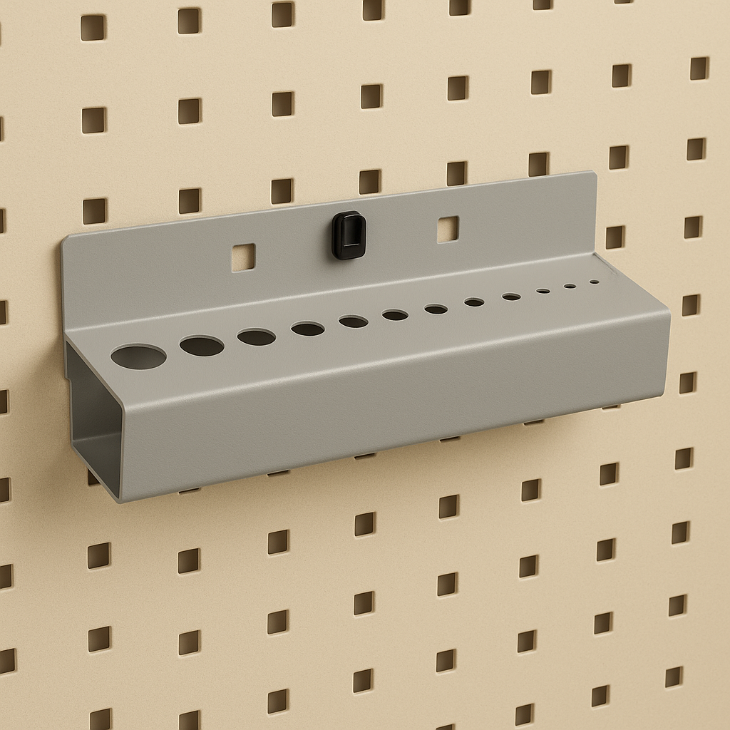 This drill bit holder can neatly store 11 drill parts with diameters between 2 mm and 15 mm.