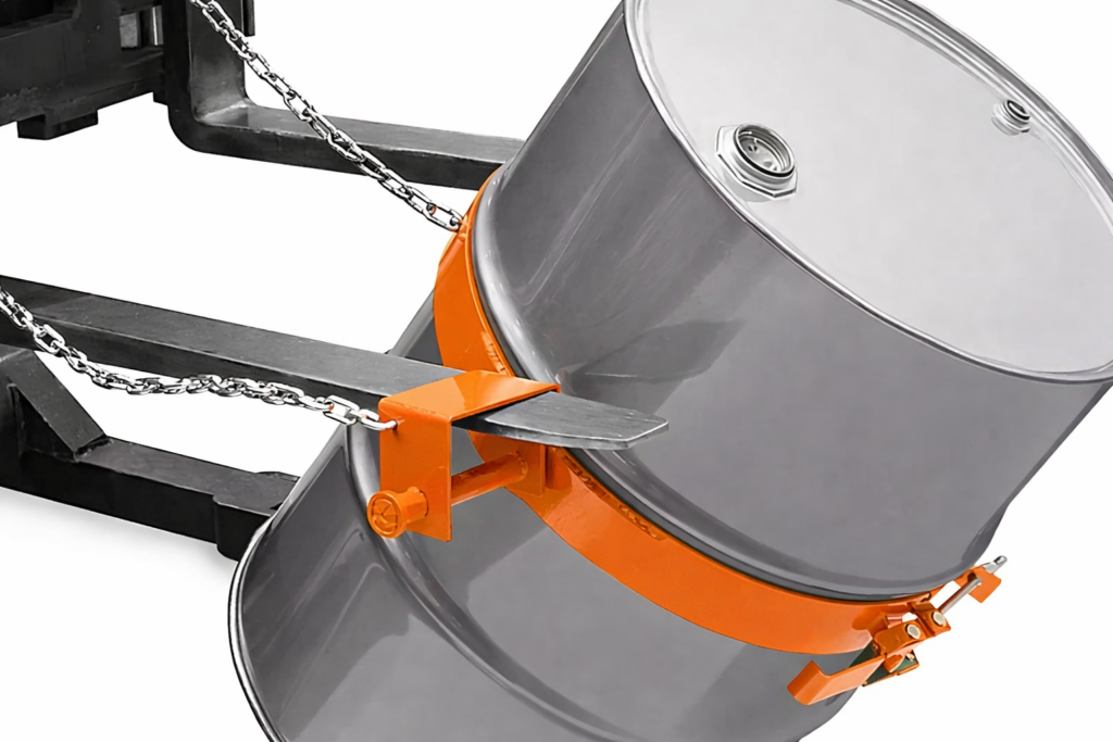Drum Truck – Steel Drums: Adjustable clip locks drums in place.