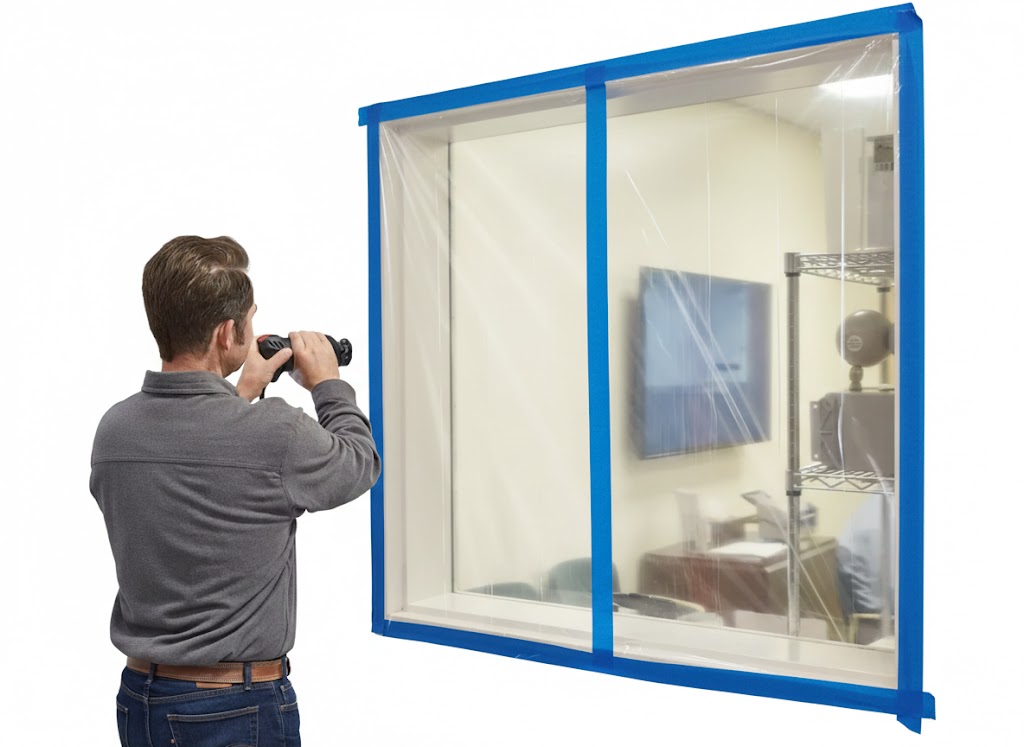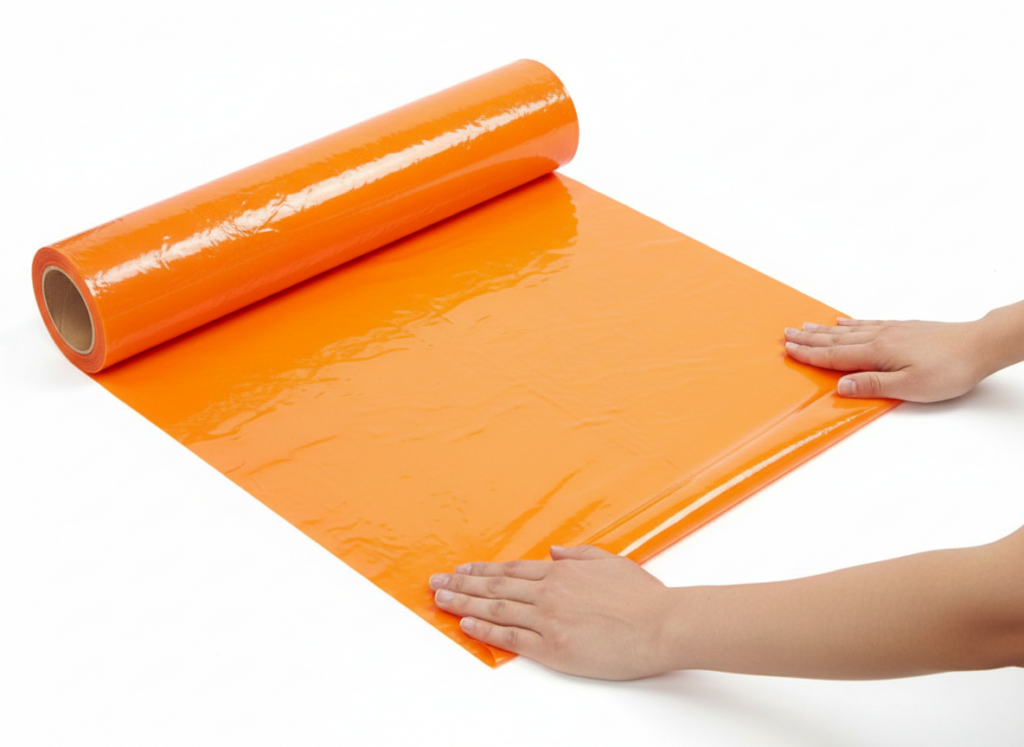 Heavy-duty PVC. Sticks tight, removes cleanly.