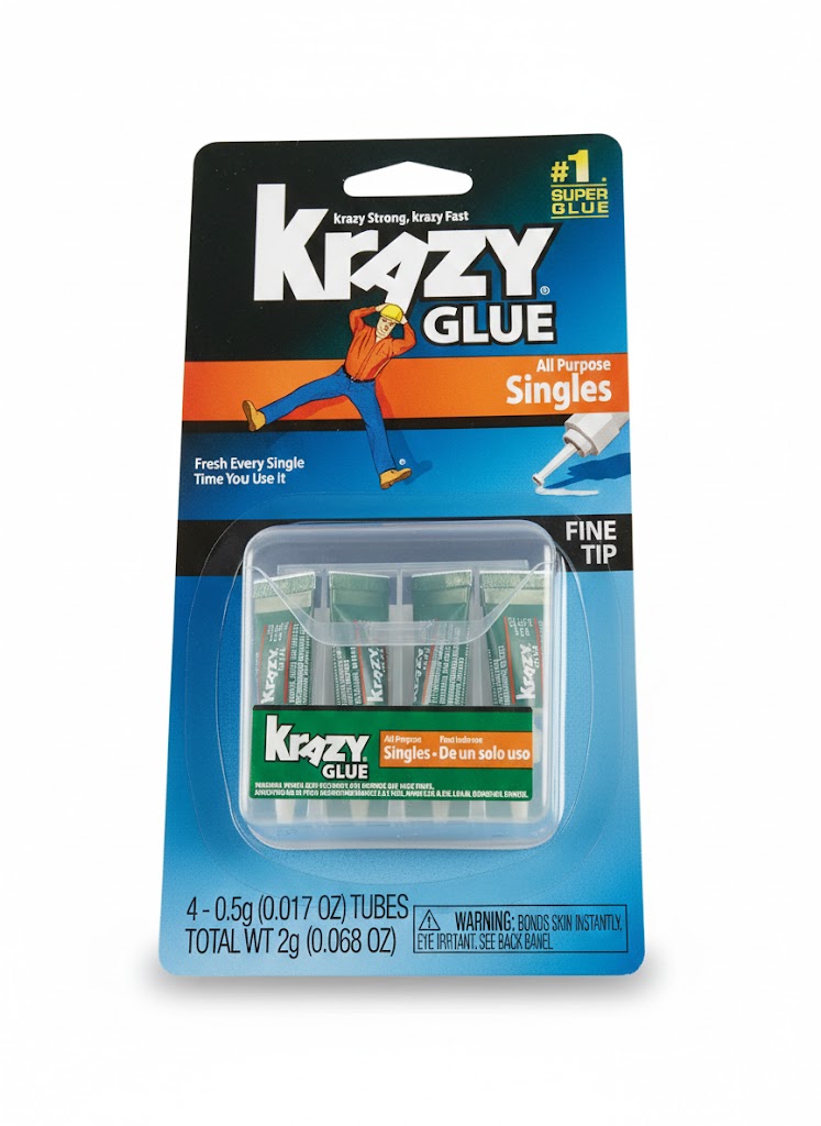 Krazy strong, krazy fast glue bonds to nearly any surface.