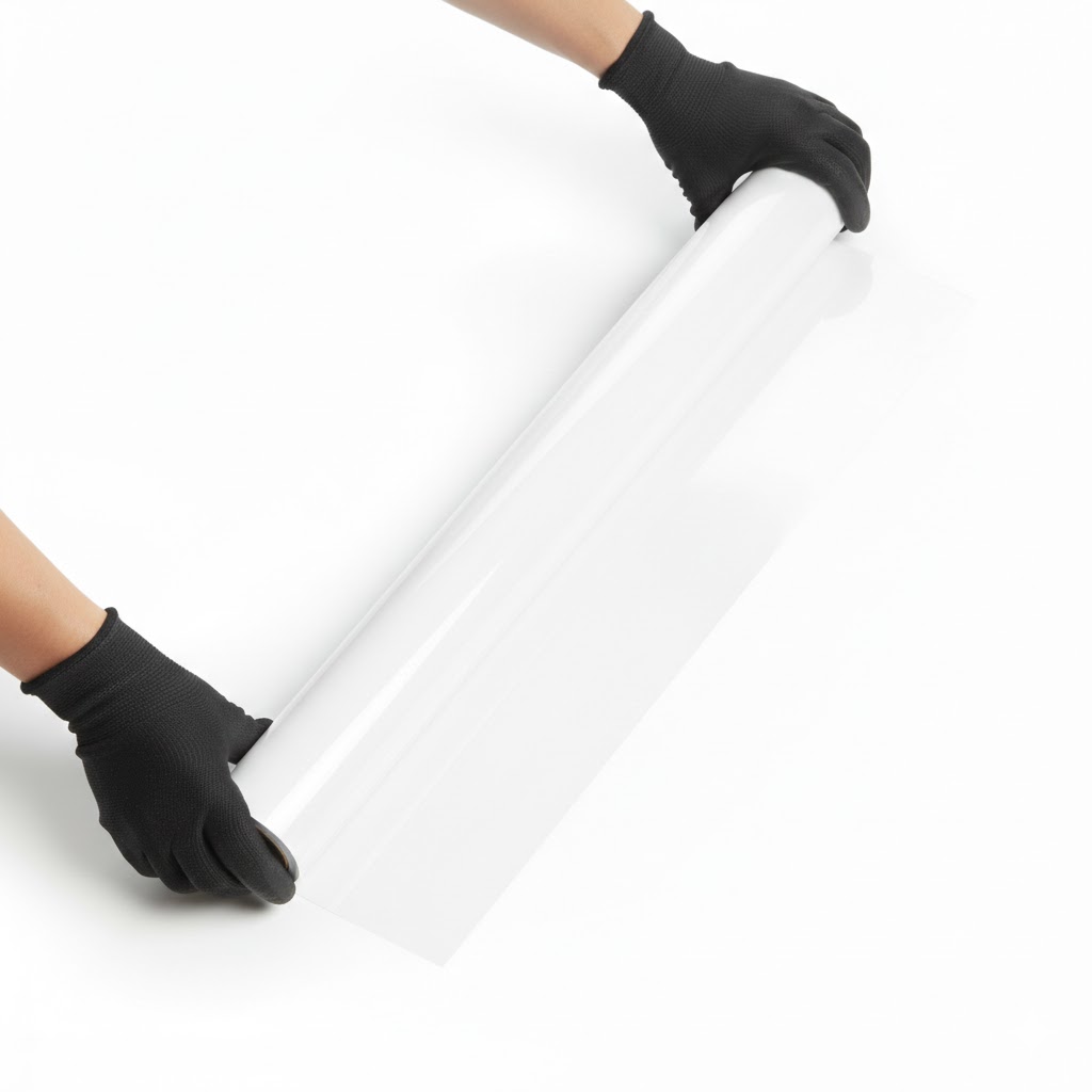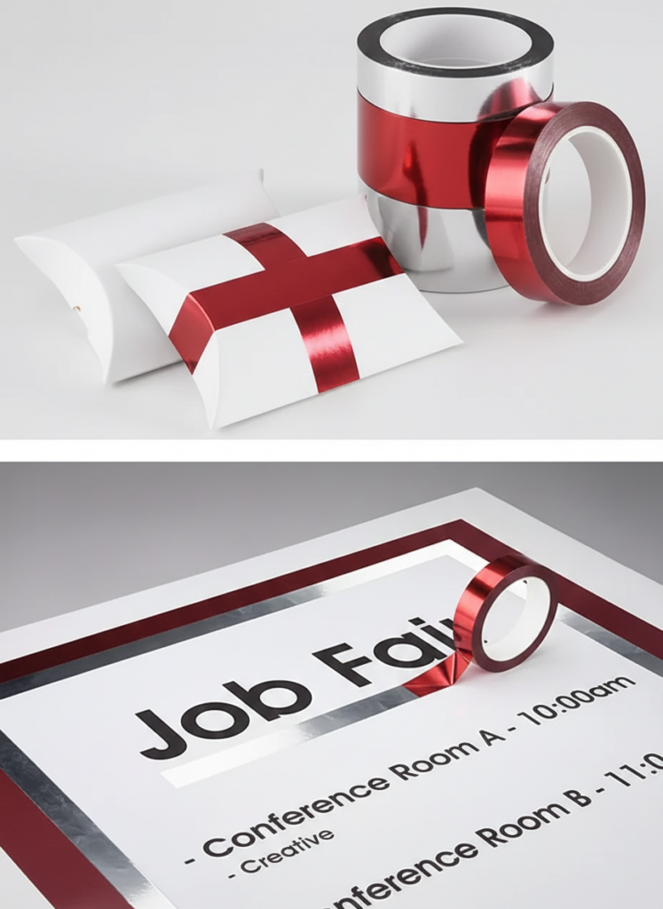 Durable metalized polyester film will not discolor. UV and solvent resistant.