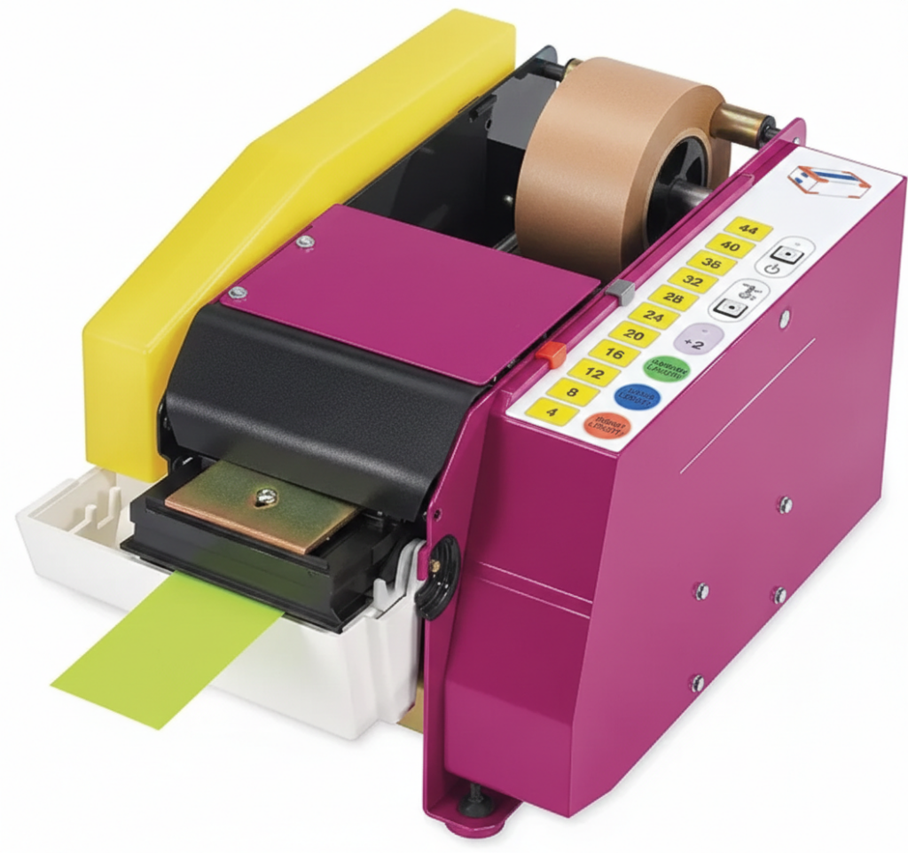 Cuts tape lengths up to 46″. Switch adds extra 2″ increments.