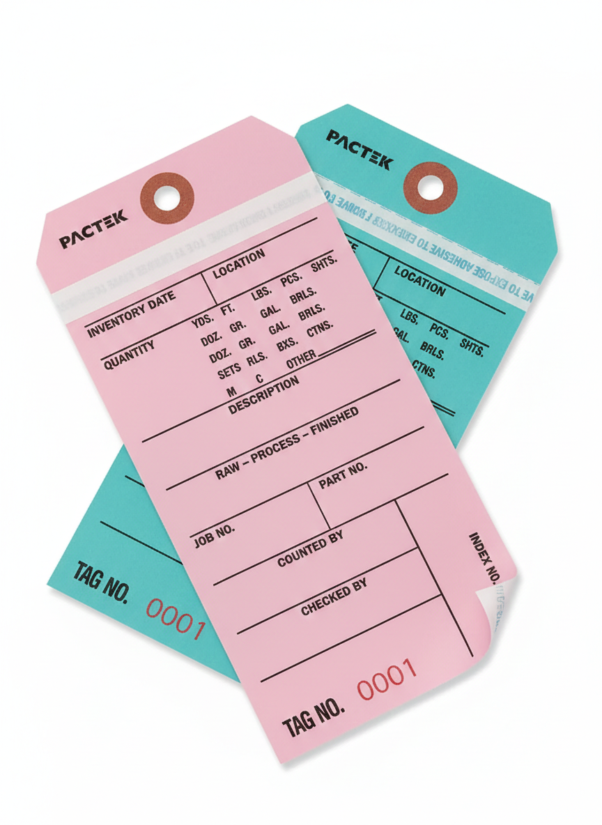 Printed front and back. Adhesive strip on base ply. Sequentially numbered 6 1/4 x 3 1/8″, #8 tags.