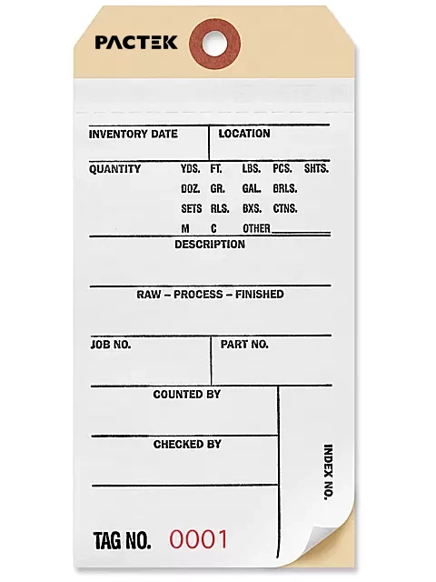 Help keep your inventory under control with sequentially pre-numbered 6 1/4 x 3 1/8″, #8 tags.