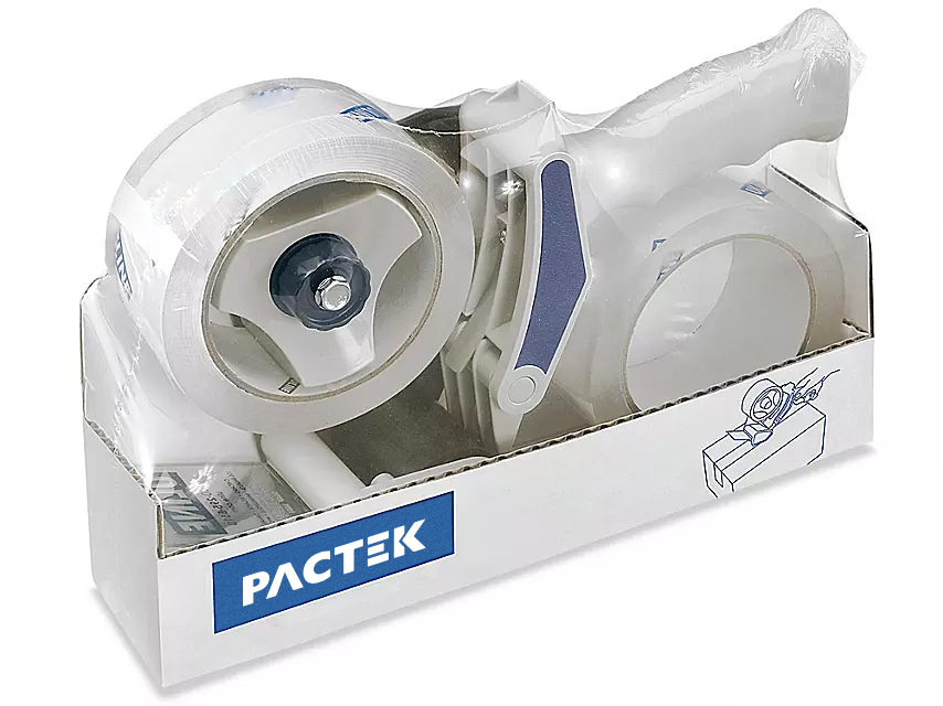 Includes two rolls of S-14564 Pactek Clear Carton Sealing Tape with H-157 Pactek Top Gun Dispenser.