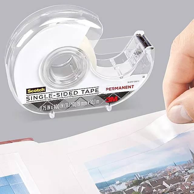 Mount photos or artwork permanently. Built-in dispenser fits in drawers, book bags and craft boxes. Acid free, non yellowing, photo safe. Clear polyester backing with acrylic adhesive.