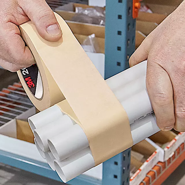 Economical utility grade for holding and bundling. Clean removal from plastic, cardboard, rubber and metal. Withstands temperatures up to 200°F for 30 minutes. Natural color crepe paper backing with rubber adhesive.