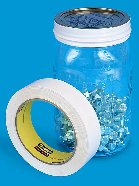 Smooth, glossy polyethylene backing with rubber adhesive.