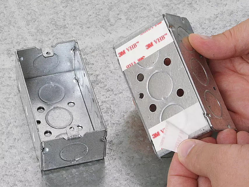 Bonds flat bare metals and plastics such as junction boxes to sheet metal.