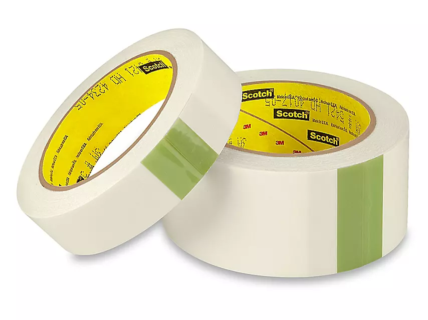 Translucent polyethylene backing with rubber adhesive and Kraft paper liner.