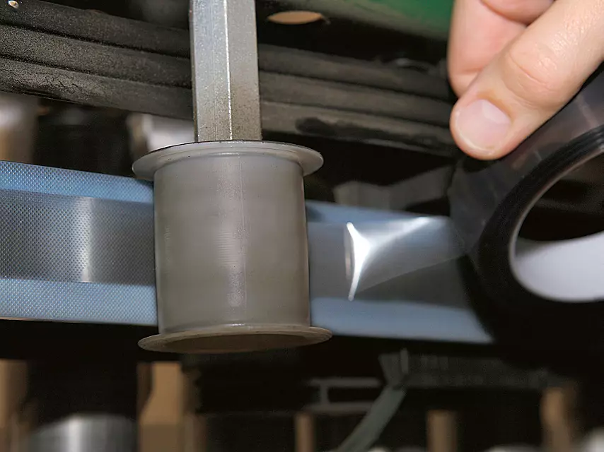Strong, elastic and slick. Masks and reinforces rollers and belts. Resists curling; lays flat. Excellent chemical resistance. Handles temperatures from -65°F to 400°F. Gray PTFE film backing with silicone adhesive.