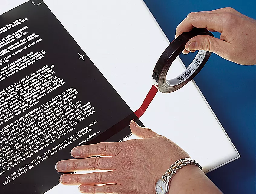 Block light from sensitive graphic art and printing materials with “rubylith” tape. Thin backing allows precise placement and crisp edges. Transparent ruby red UPVC with rubber adhesive.