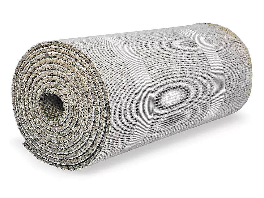 Clear polypropylene backing reinforced with glass yarn filaments. Synthetic rubber adhesive.