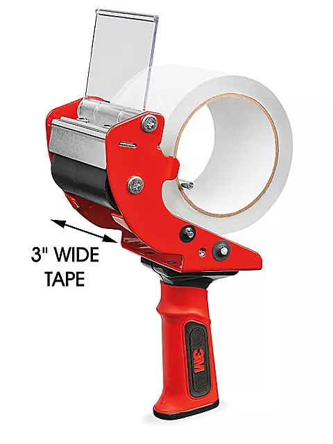 Economical, spring-loaded dispenser for industrial and retail use. Retractable blade prevents accidental cuts. Durable, high-impact plastic construction. Works with 3″ wide tape.