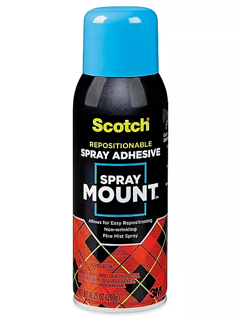 Low-tack adhesive bonds lightweight materials For use on foil, paper and newsprint. Initially repositionable. Spray on thick for a stronger bond. Convenient and versatile. Permanent after bonding.