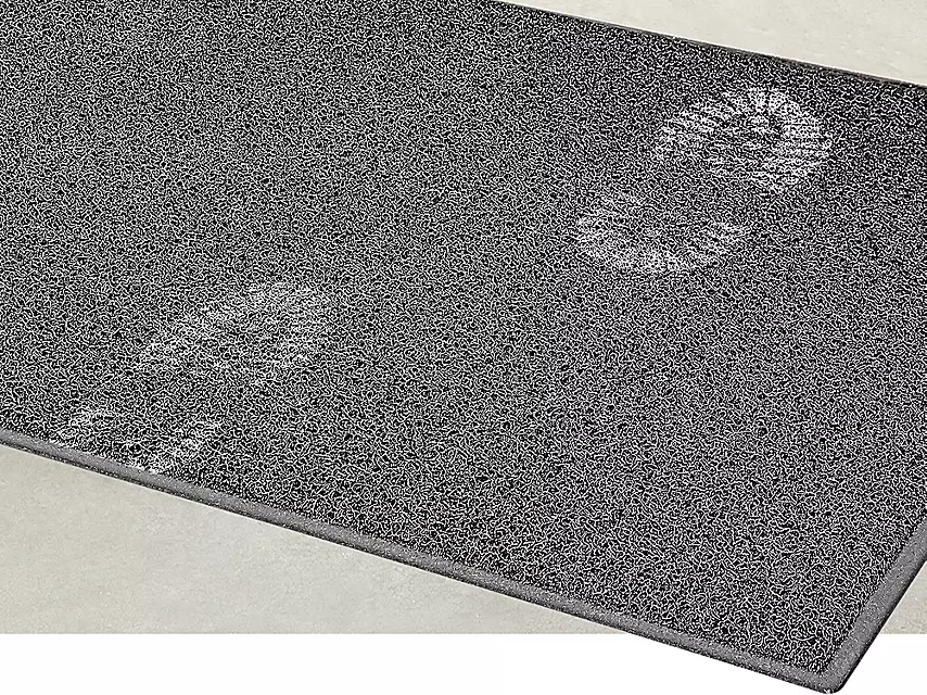 Spaghetti-style scraper mat traps dust and dirt. Use in hotel, school and restaurant lobbies. Cushioned vinyl foam backing protects floors. Shake, vacuum or hose down to clean.