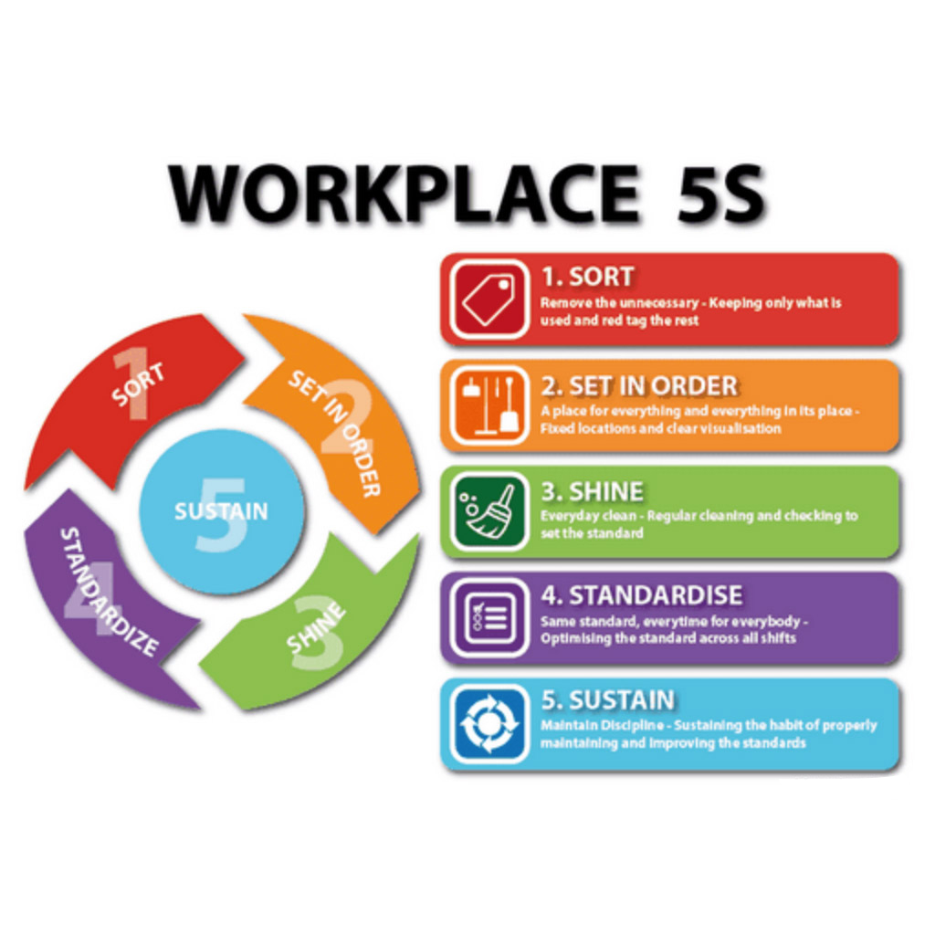 This landscape poster can be used to quickly inform staff about the 5S principles, this will help keep 5S in the minds of your staff.