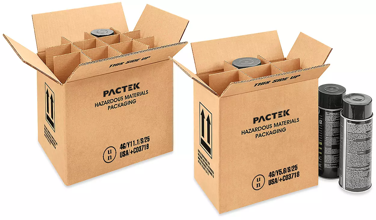 Ship aerosol cans via air, ground or water. Sturdy corrugated divider holds cans upright and in place. Includes carton, liner and dividers. Ships flat, saves space.