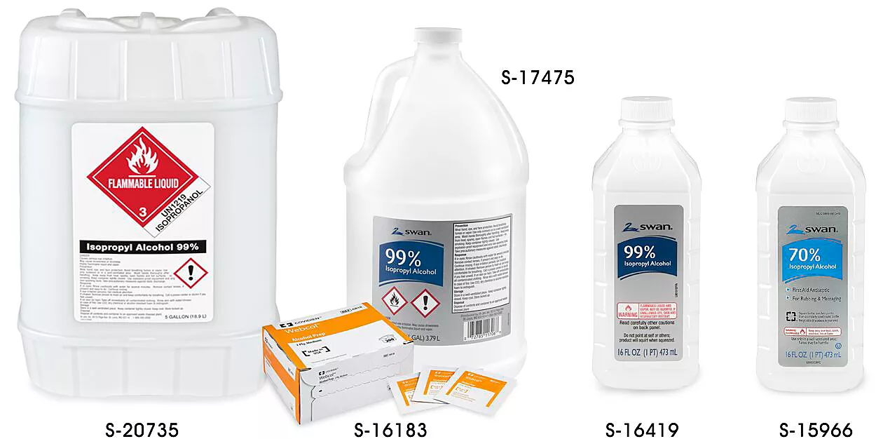 99% Isopropyl Alcohol: Disinfects surfaces. Use in labs, schools or clinics.