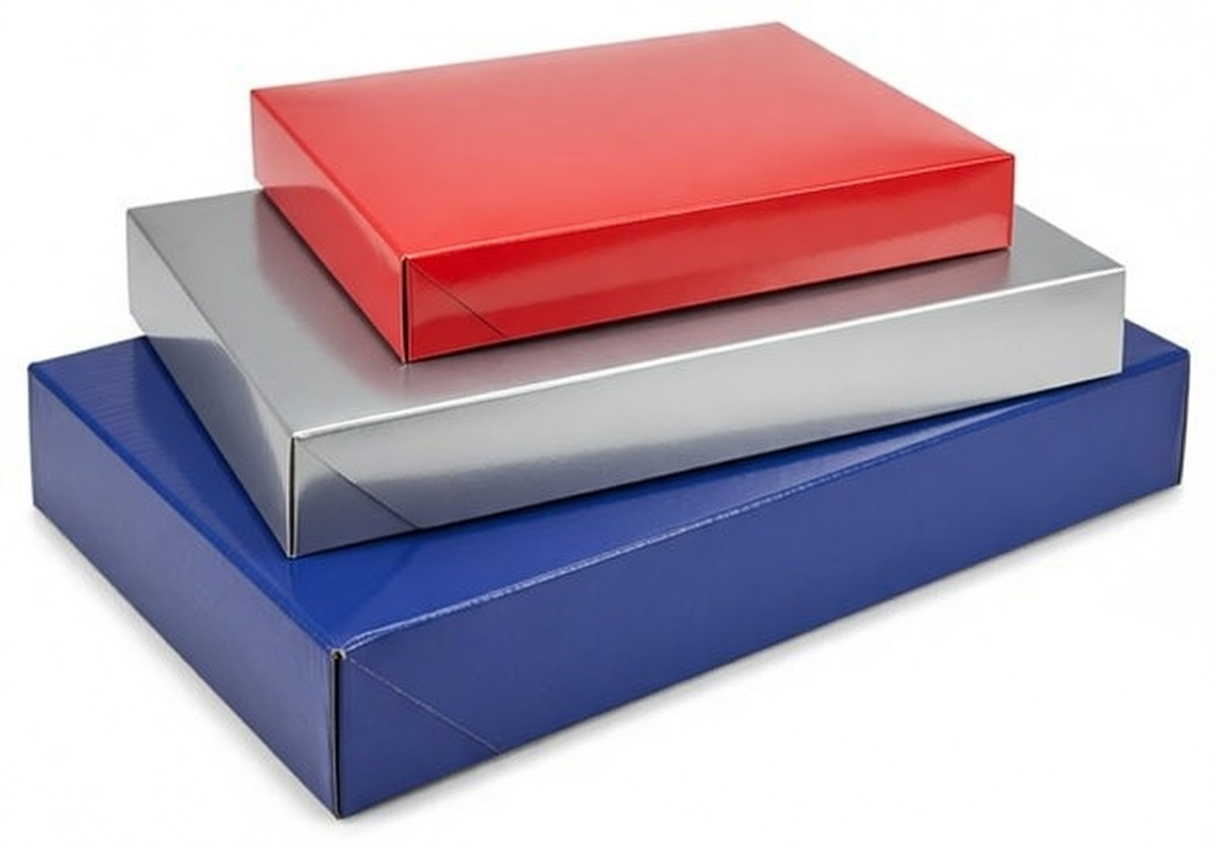 Pop-up style apparel box instantly folds into place. Holds various sizes of clothing. Chipboard exterior with gray/kraft interior. Ships flat to save on freight and storage space.