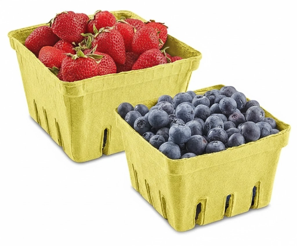 Package fresh fruits and veggies. Durable molded fiber absorbs excess moisture. Vents keep produce fresh. Food safe. Made in Canada.