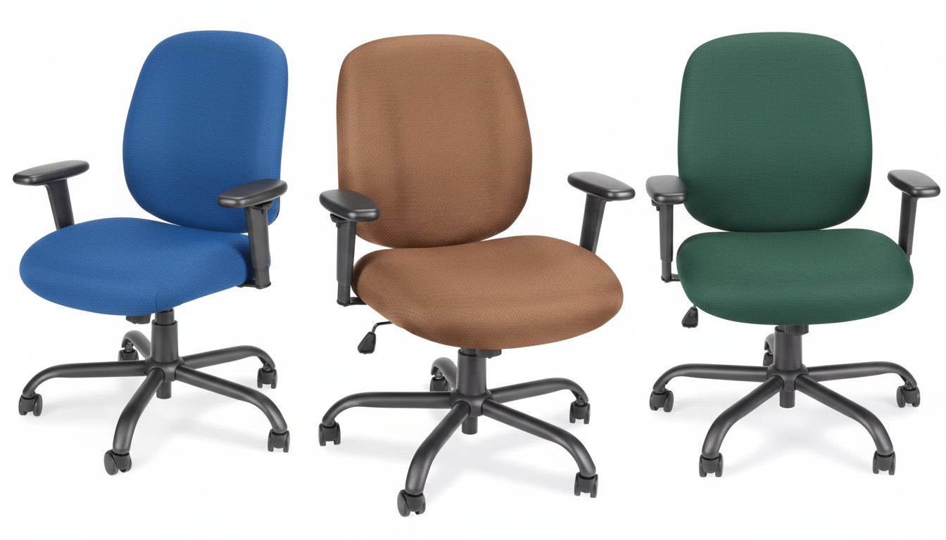 Padded, adjustable armrests. 5″ thick molded foam seat.