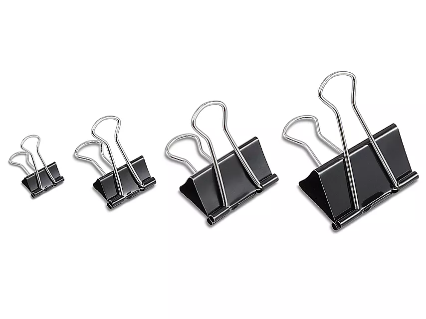 Securely bind thick reports, manuals and files. Durable metal clip provides a firm grip. Handles fold down for file storage.