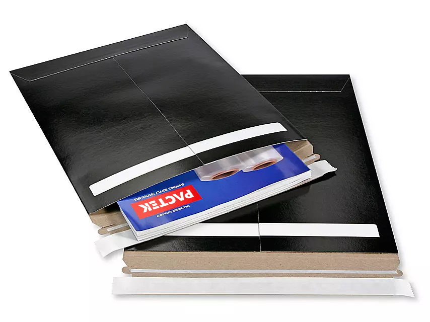 Heavy-duty black StayFlats® Mailers protect your valuable photos and documents. Peel-and-seal closure with easy-open tear strip. No tape or stiffeners needed. Will not bend or crush.
