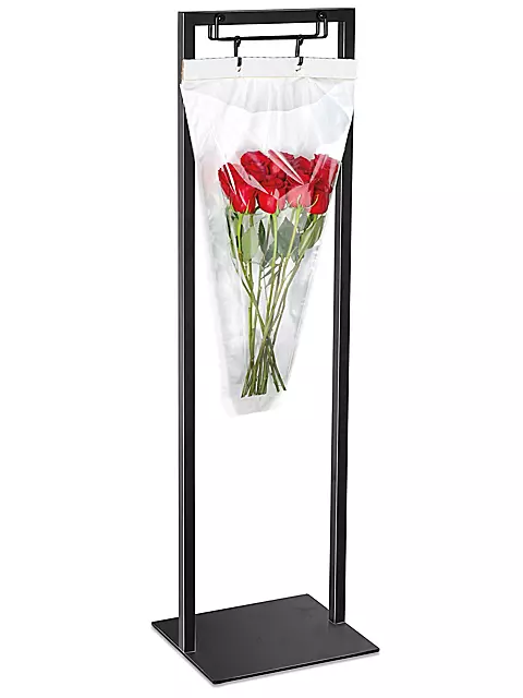 Bouquet Sleeve Stand – Powder-coated steel frame. Double-sided. Adjustable J-hooks fit any size header card.