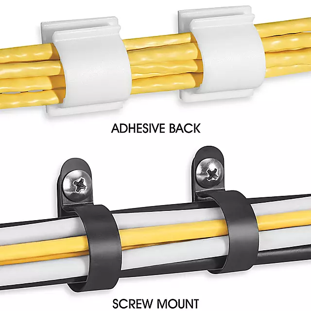 Secure and route cables throughout your facility. UL Listed 6.6 nylon. Non-conductive and non-corrosive. Adhesive Back – Cords slide in and out of top opening. Screw Mount – Secure with screw, nail, bolt or rivet.