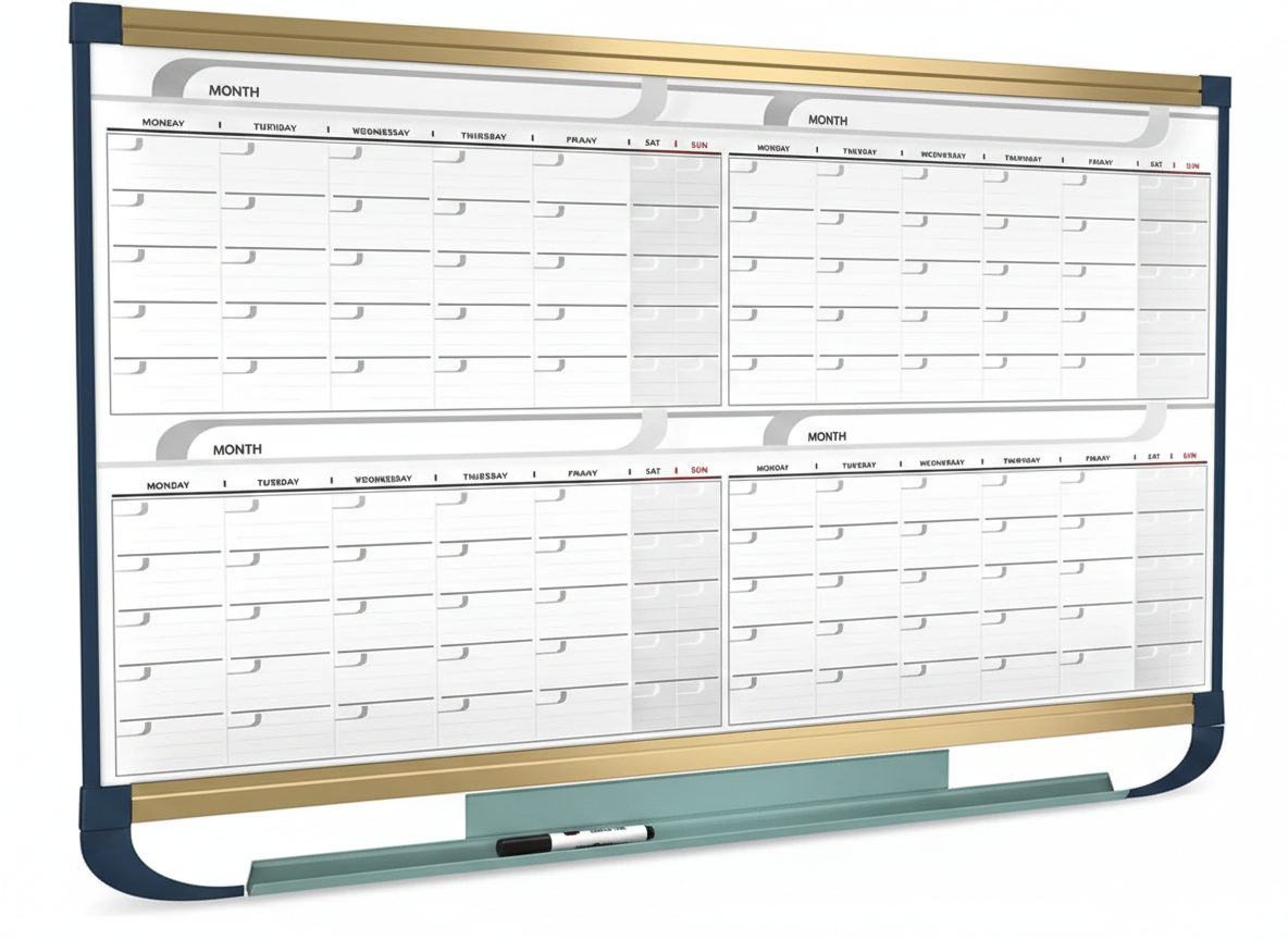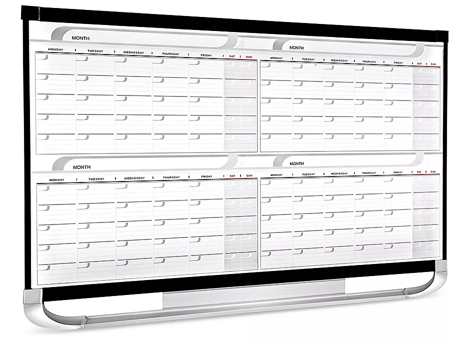 Set important meeting due dates. Wipes off easily. Magnetic steel surface. Black aluminum frame. Includes 4 markers, marker tray, eraser and mounting hardware. Additional Dry Erase Markers and Accessories available.