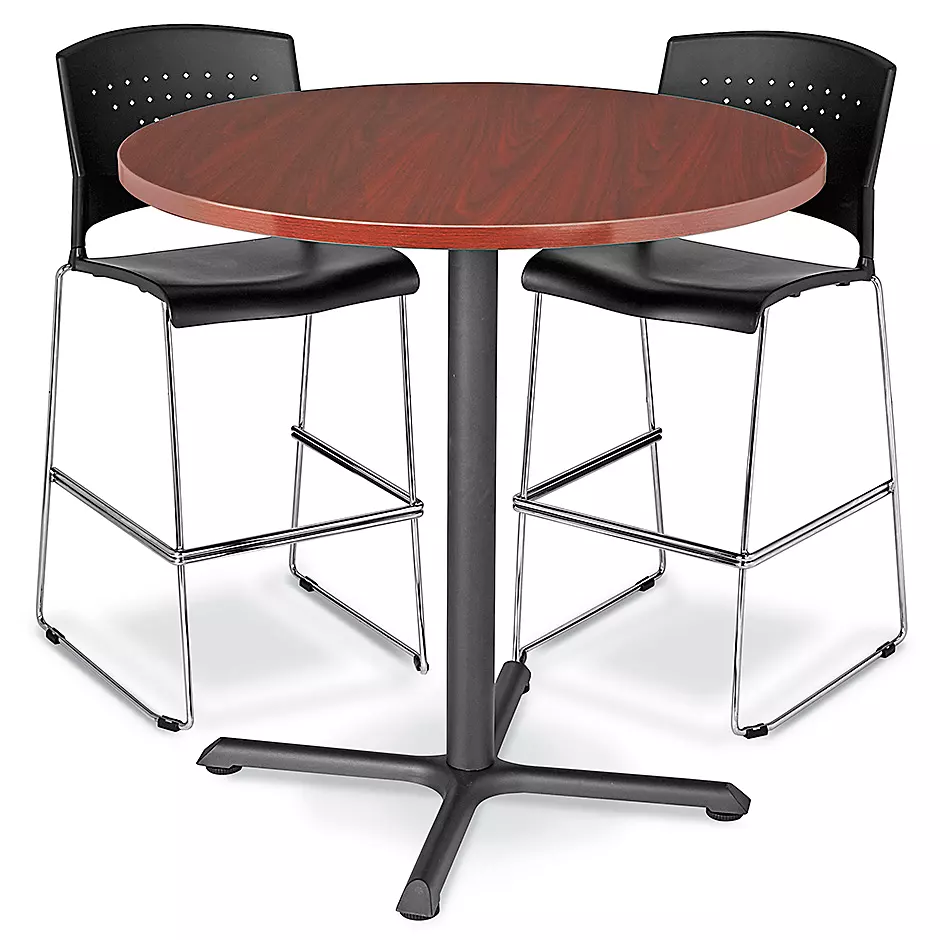 42″ high. 1 1/4″ thick top with smooth, scratch-resistant laminate surface.