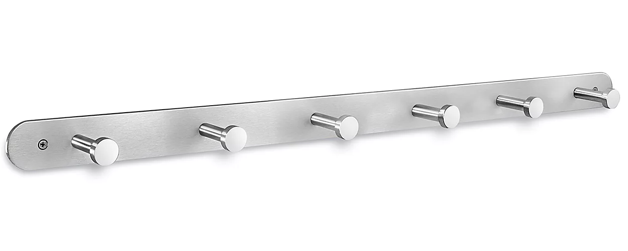 Oversized circular hooks hold jackets. Recommended for waiting rooms and offices. Heavy duty aluminum. Easy to assemble. Mounting hardware included.