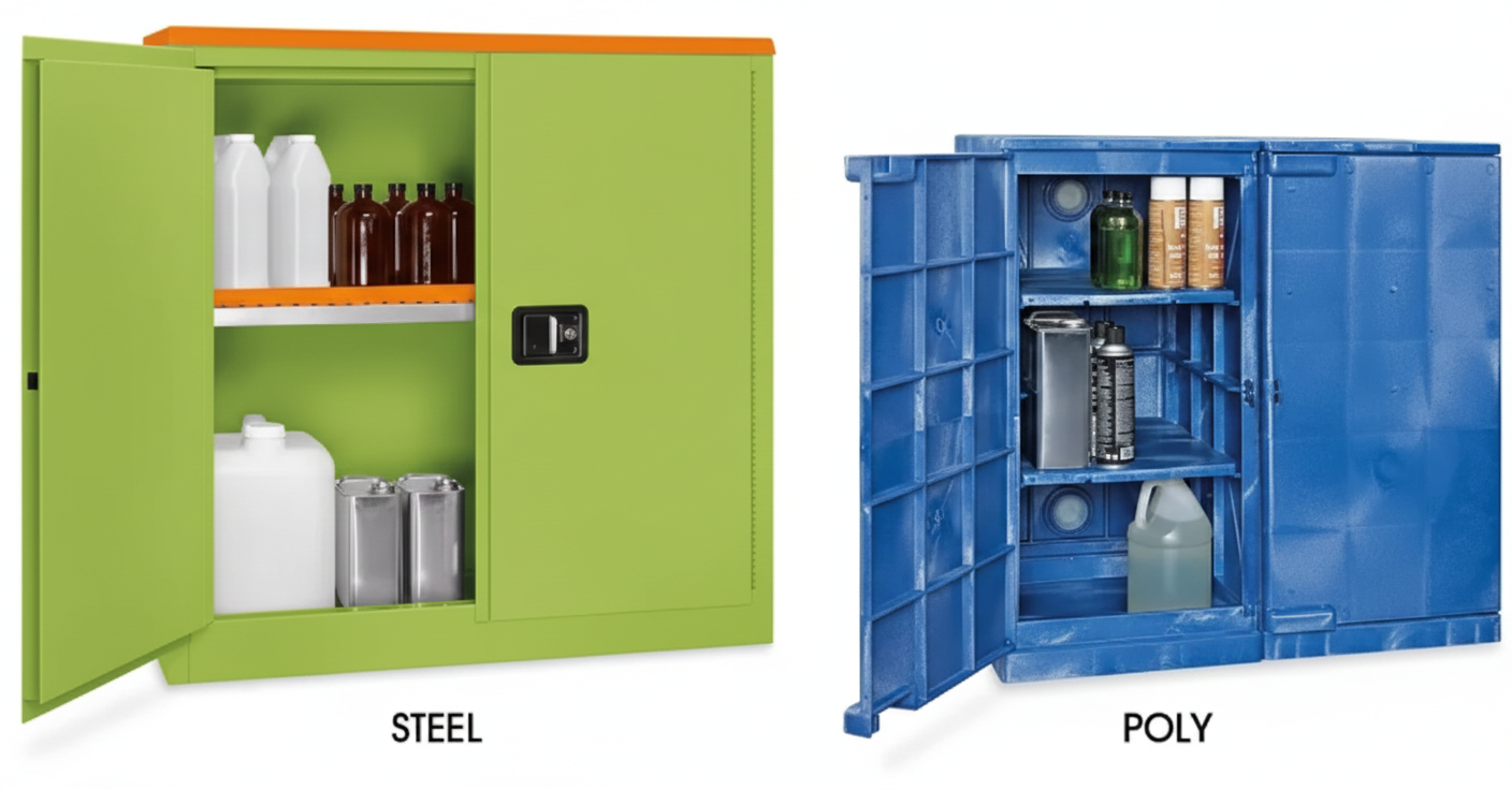Steel – Double wall 18-gauge steel. Keyed lock.