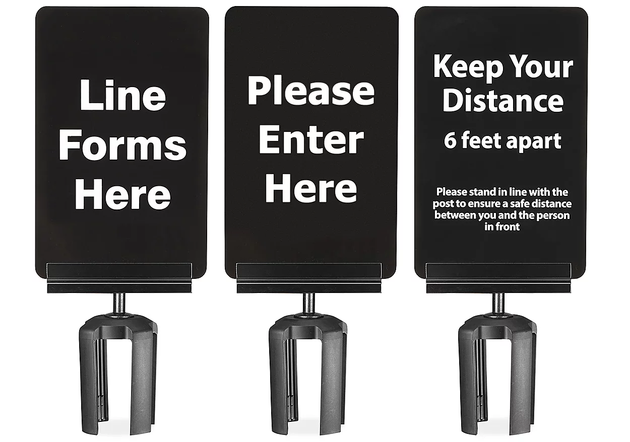 Direct customers and visitors at service counters or special events. Attractive black acrylic signs. Bracket included.