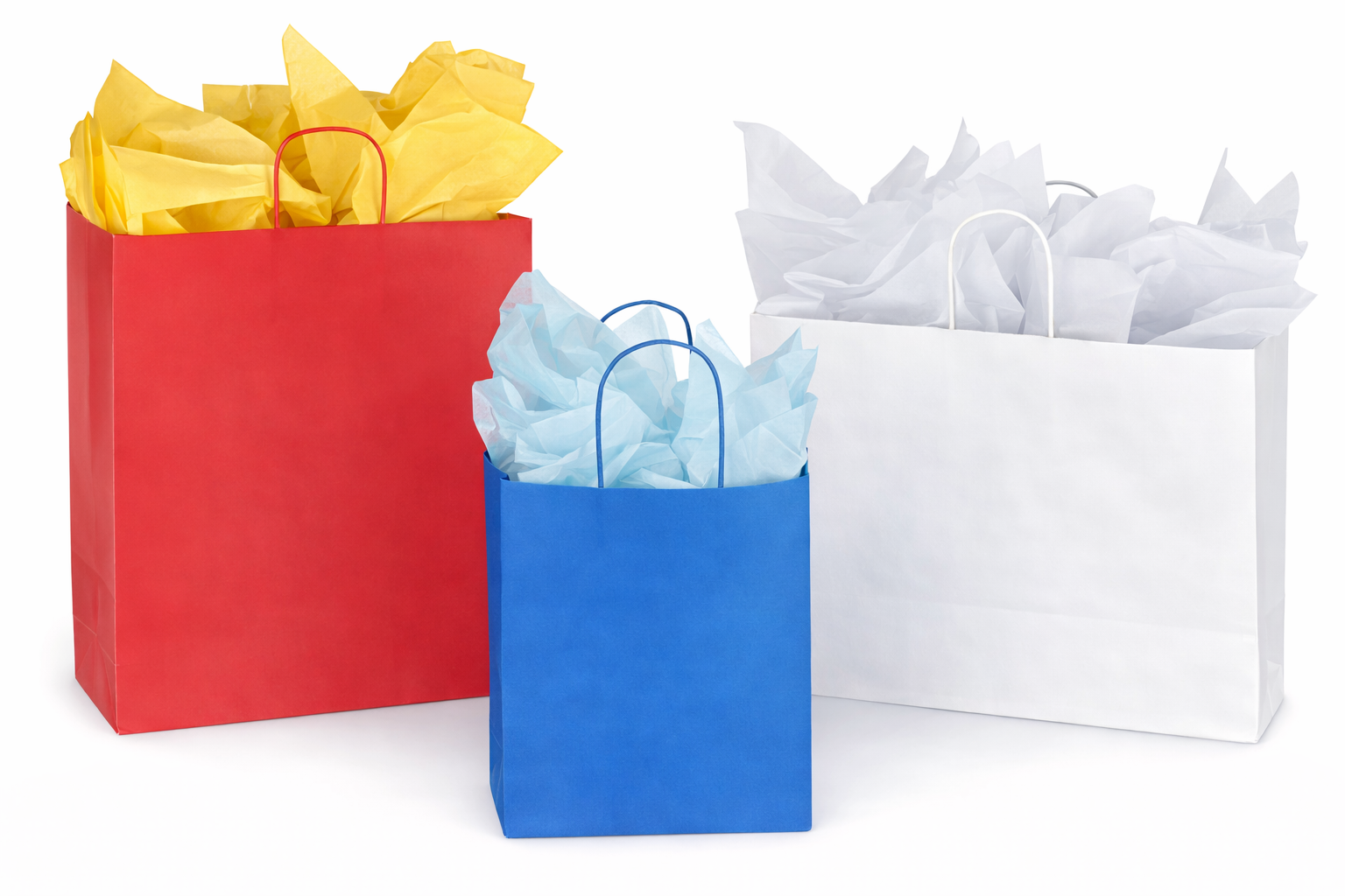 Strong twisted paper handles make purchases easy to carry.