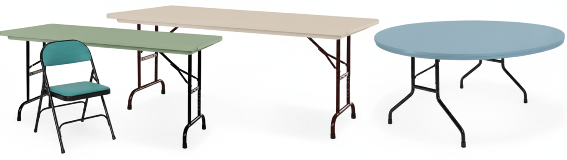 Tables come with adjustable or fixed legs.