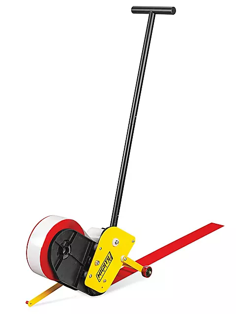 Save time and effort marking your warehouse floors. Removes liner while applying up to 100 feet of tape at one time. Holds tape widths 2-4″. Use with Mighty Line Deluxe Safety Tape.