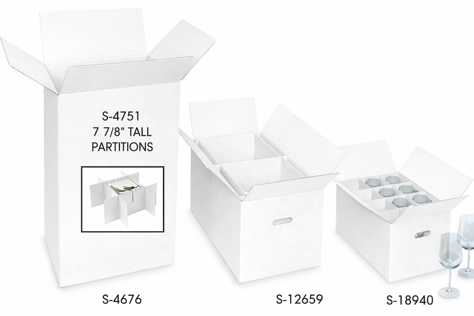 Dish Pack Box S-4676 – Use S-4751 Partitions. Remove 2 center partitions for dishes.
