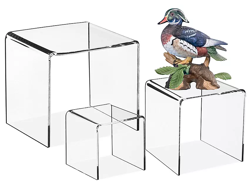 Spotlight your product and maximize space on counters and shelves. Sturdy, attractive crystal clear acrylic. Smooth polished edges.