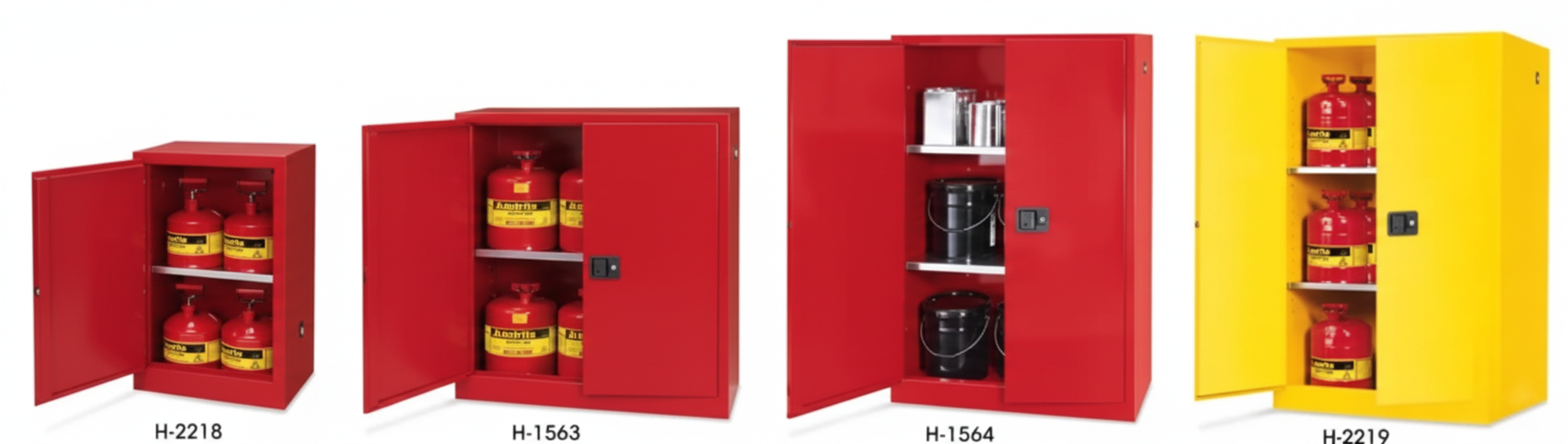 Yellow Safety Cabinets – For aerosols, gasoline and flammable liquids.