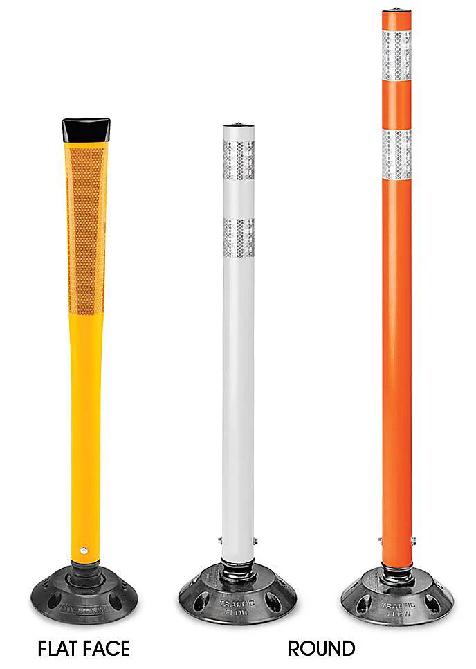 Flat Face – 12″ reflective strips on both sides. Increased visibility for 2-way traffic in parking garages or receiving docks.