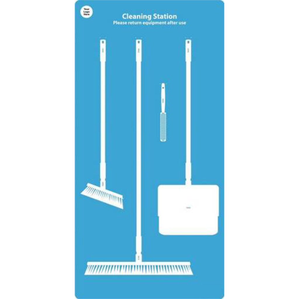 This Floor Sweeping & Lobby Pan shadow board is the perfect storage solution or alternative to a tool peg board. This sweeping station makes use of a lobby pan & a 600mm wide brush to make sweeping the floor easier! Shadow boards allow you to quickly identify where a tool should be stored and if it is missing. It also provides the benefit of being colour coded allowing you to create zones within your workplace. E.g. Red for washrooms & Yellow for clinical areas.