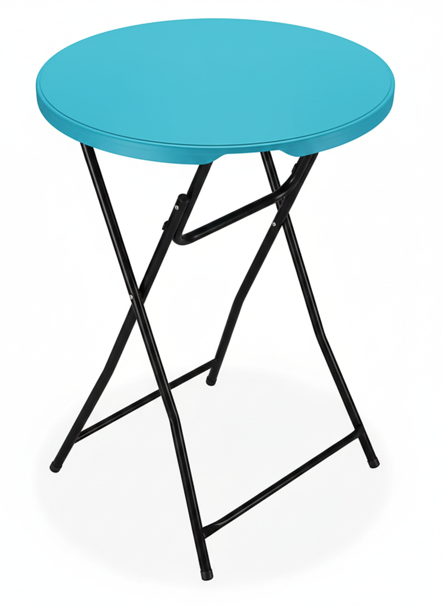 Stand and mingle. Easy setup for job fairs, theater lobbies and receptions. Blow-molded polyethylene top is easy to clean. 44″ fixed table height. Locking steel legs. Folds to 2 1/2″ thickness for storage.