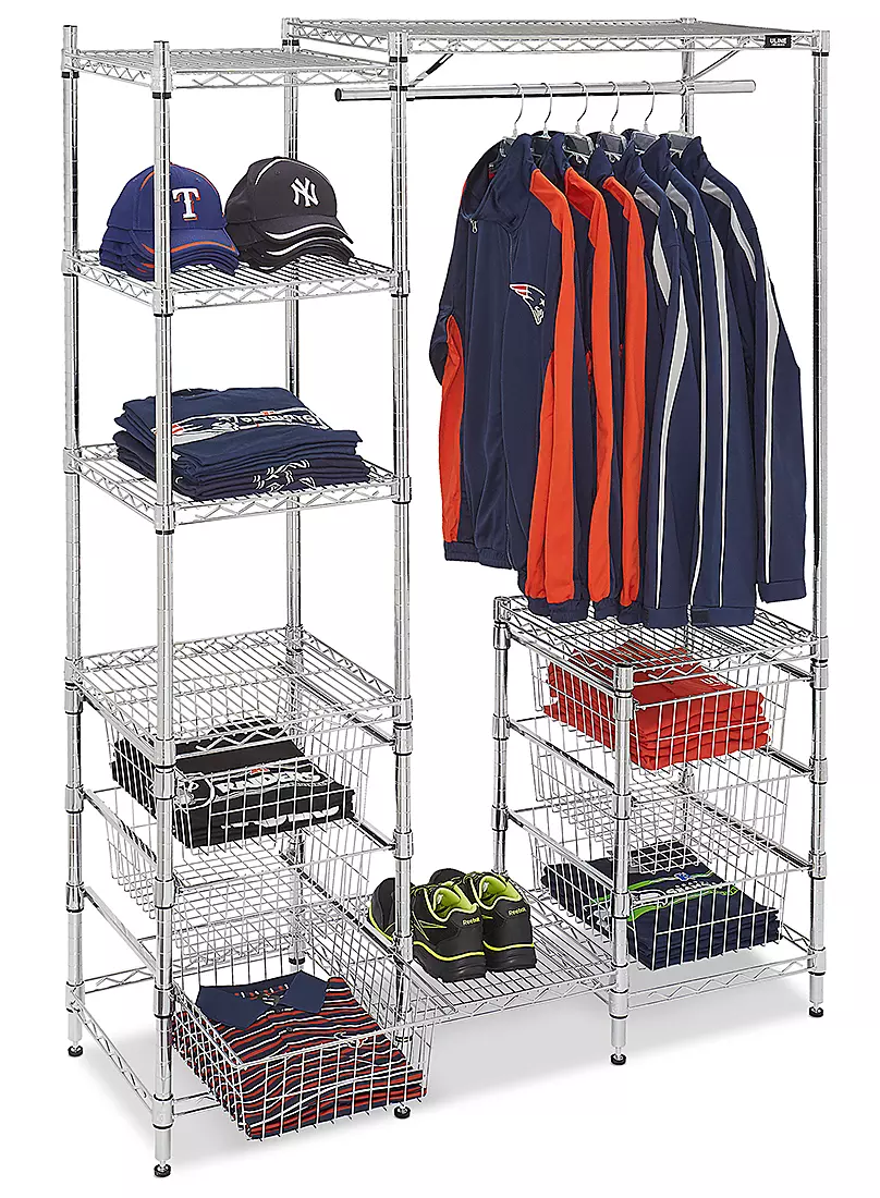 H-2449 Includes 13 wire shelves, 35″ hanging rod.