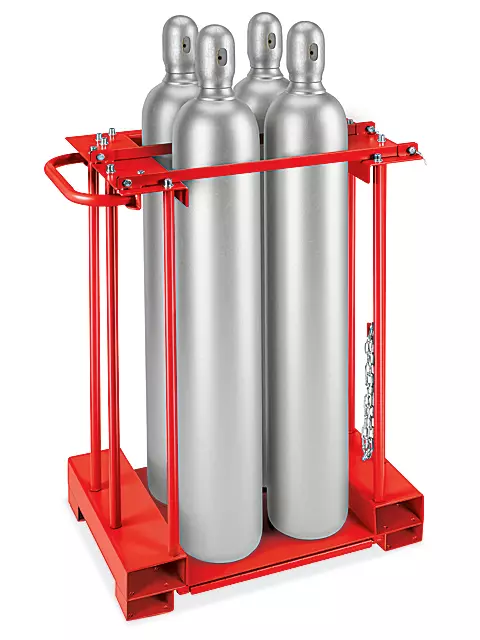 Safely transport multiple cylinders with your forklift. Retractable side-loading ramp. Powder-coated steel construction. Fits up to 9 1/2″ diameter tanks. Optional 4″ casters available.
